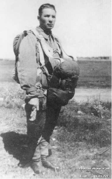 1948 год, командир 76-й гвардейской Черниговской Краснознамённой воздушно-десантной дивизии генерал-майор В.Ф. Маргелов перед десантированием. Он лично совершил более 60 прыжков с парашютом, свой первый первый прыжок в 40 лет, последний – в 65 лет.