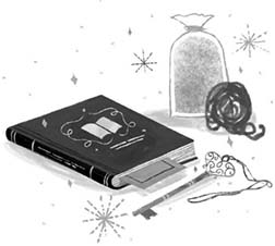 On one of the shelves was a curious selection of objects: the items that she was sure were clues to lead her to the Archivists. Even though Grandma and Grandad thought the Archivists were nothing more than a bookwandering fairy tale, Tilly just knew it was too much of a coincidence that these particular items had all ended up with her.