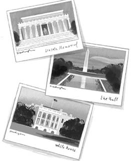 They saw the gigantic Lincoln Memorial – a huge stone structure that looked like something out of a Greek myth, the tall, elegant Washington Monument sticking up into the sky as though it were trying to pierce the clouds and, looking up the hill from that tower, they could just about see the famous shape of the White House itself, where the American president lived.