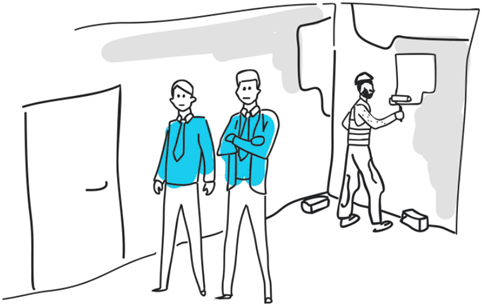 Наш офис, в котором мы выносили свои планы по захвату мира, представлял собой комнатку в 18 м² на цокольном этаже в жилой пятиэтажной хрущевке. Стоимость аренды была небольшой, поскольку офис был так себе. Пройти в наше помещение можно было двумя путями. Первый путь – через кабинет арендодателя. Второй – через длинный коридор, который бесконечно ремонтировал родственник нашего арендодателя. Родственник был милейшим человеком, однако выглядел соответствующе: заляпанная краской и известью тельняшка, из-под которой пробивалась волосатая грудь, трико с пузырями на коленках, сделанная из газеты треуголка (ее часто делают маляры, чтобы прикрыть волосы).
