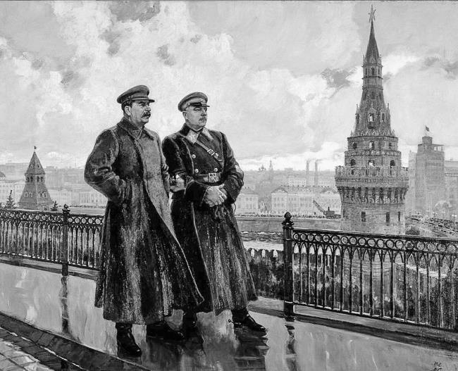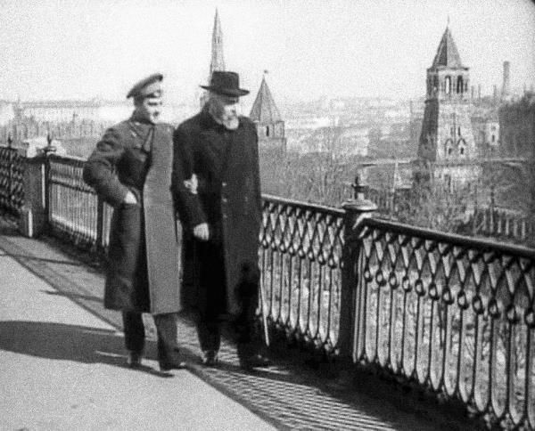 А самая удивительная история связана с «Революционером». Картина о старом каторжанине и его отношениях с сыном – первое искреннее политическое высказывание режиссера, но сейчас нас интересует другое. Один коротенький, почти декоративный эпизод – герои медленно идут по мосту с видом на Кремль, спокойно беседуют… Двадцать один год спустя эту сцену повторит известный художник Александр Герасимов. С немного другими персонажами.