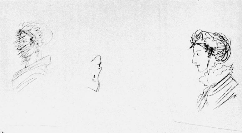 На обороте 2-го листа нарисованы карандашом три головки, которые воспроизведены здесь (на стр. 125) автотипией.