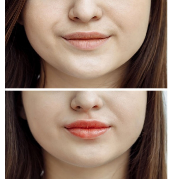 Тем не менее, чаще всего бесконтурный перманентный макияж делается на губах. Он выглядит достаточно натурально. Пигмент в данном случае распределяется и растушевывается на поверхности кожи, насыщает ее цветом, но при этом не создает заметный контур.