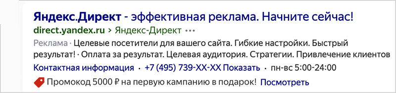 Промоакция в Яндекс Директ
