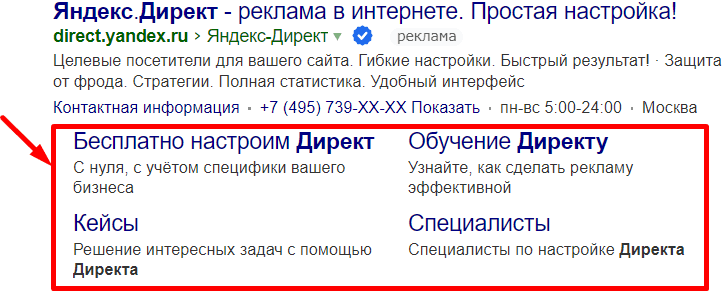 Премиум-размещение – размещение на первом или втором месте в поисковой выдаче или в поисковой строке («саджест»). Объявление на пером или втором месте становится в 2–3 раза больше, раскрываются дополнительные ссылки. Для того чтобы оно отобразилось в таком формате, недостаточно установить высокую ставку, нужно чтобы CTR (см. ниже) вашего объявления был выше конкурентов.