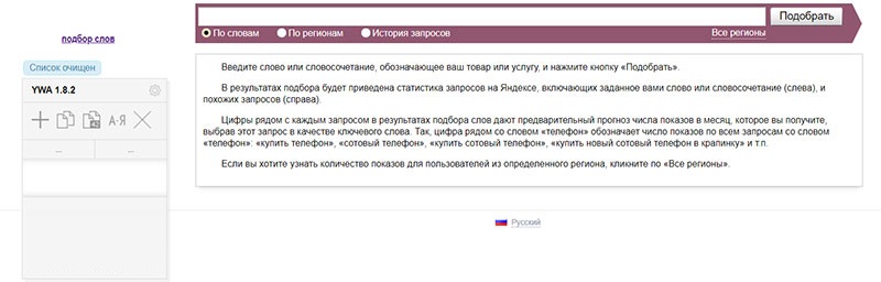 Интерфейс WordStat