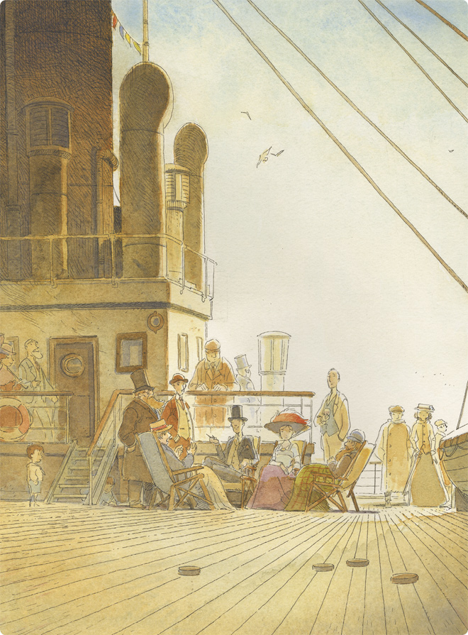 И вот, едва отплыв, мы уже чувствуем, что нам сопутствует, нас сопровождает, а порой и опережает далекий голос. Каждому из нас он нашептывает слова, что шлет оставленный нами мир. Двое друзей поговорили со мной. Десять, двадцать других передали грустные или шутливые слова прощания другим пассажирам на борту.