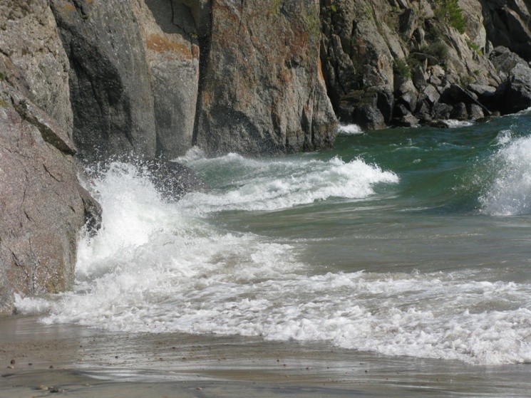 «Погода наишикарнейшая – тепло, солнце, на небе ни облачка. И если бы не вода в Байкале +15 градусов, то вполне можно ощутить себя где-нибудь на морском курорте. Мы так, конечно, заходить – заходили, умыться там, ручки-ножки пополоскать, а вот мальчишки-проводники плавали и ныряли со скал от души, и очень радовались, что вода в Байкале в этом году такая теплая. Я, сославшись на ногу, валялась на песочке, а Сашка с Антохой пошли лазать по скалам, а потом прибежали за мной и утащили фоткаться в «ходульных» деревьях и пробовать местную кулебяку с омулем»