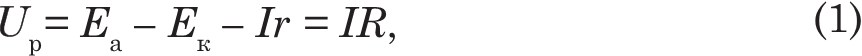 где Еа и Ек– потенциалы электродов при разряде; I – ток разряда; r – внутреннее сопротивление ХИТ; R – внешнее сопротивление или нагрузка при разряде.