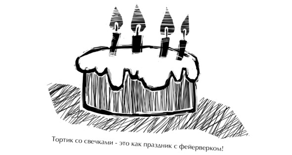 Надо сообщить вам, уважаемые читатели, что в домике Костика, где и происходило то, о чём я сейчас рассказываю, было много-много подушек. Были малюсенькие подушечки, средние подушки (в самый раз под Страусовы ушки), нормальные подухи (для Костика и Грини), и большие-пребольшие как матрас подушищи. Одной из таких Костик и зашвырнул в Гриню. Гриня в накладе не остался, быстренько сбегал домой и приволок бабушкины тапки, которые та оставила в прошлый приезд, и валенки Старого Хозяина. Кто такой был этот Старый Хозяин, никто никогда не знал, но то, что валенки были именно его – никто не сомневался. Так вот. С криками «С днём рожденья», Гриню встретил на пороге целый шквал костиковых подушек, навстречу которым с такими же точно криками вылетела стайка бабушкиных тапок и валенки. Через некоторое время в ход пошли мячики и мягкие игрушки, еще через некоторое – веник и швабра. Все это не кончилось бы добром, но как назло, когда Костик и Гриня напоздравляли друг друга наповал, в дверь кто-то громко постучал. Вот так: БРЯМС, БРЯМС, БРЯМС. Потом эта дверь со скрипом «И-И-И-и-и-и-и» открылась, и в домик, в котором после побоища царила неразбериха, вошли ёжики, крысы, арбуз-на-колёсах-без-имени, Сникерс, Малёк и Грустный Страус. Они несли большой торт, утыканный свечами как массажная расческа, особенно новая, бывает утыкана зубьями.