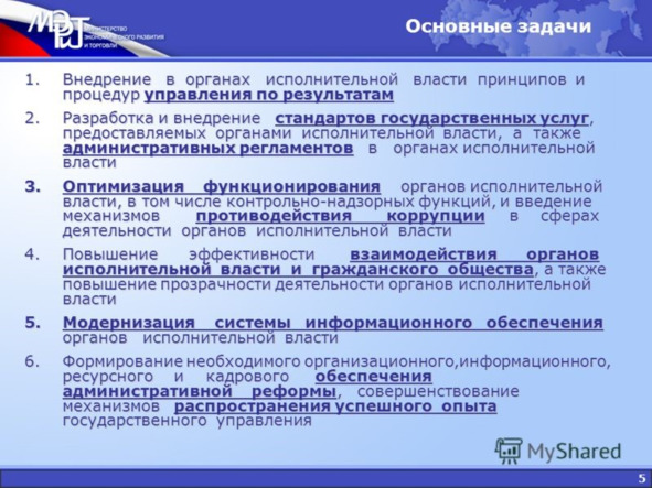 5) переход от децентрализации (понимаемой как расширение функций и компетенции органов местного управления и соответственно ограничение правомочий центральных органов государственного управления) к деконцентрации (понимаемой как перенос полномочий по принятию решений на нижестоящие уровни руководства в централизованных системах органов государственного управления).