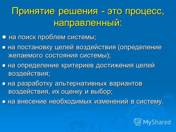 Принятие решения- это процесс направленный