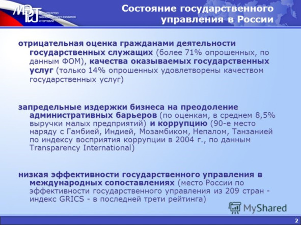1.3.Благоприятная среда управленческими и административными процессами, опыт государственного управления РФ