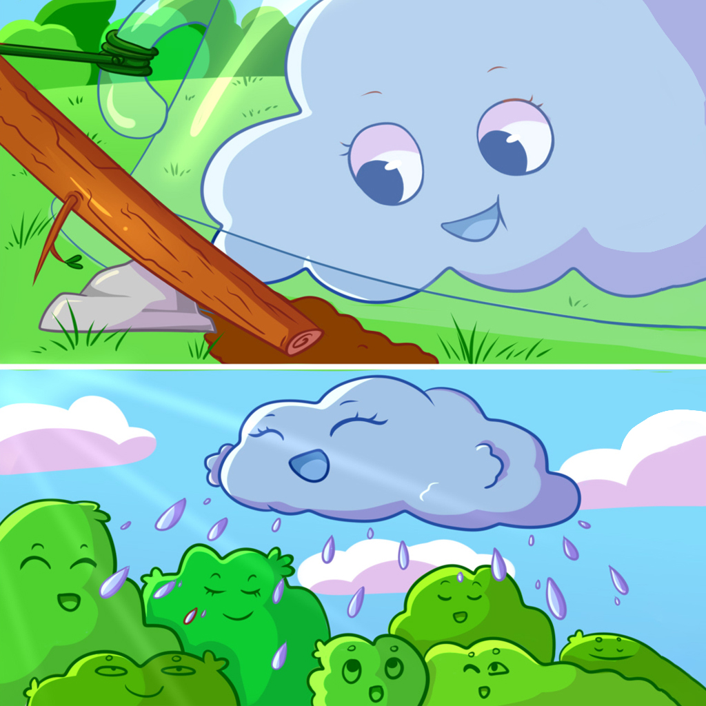 – Ну как, получилось напоить деревья, – спросил Рогалик у Тучки.