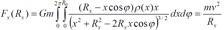 Итак, мы вывели достаточно простое интегральное уравнение для построения сил, действующих на тело, помещённое внутрь пылевого диска с переменной плотностью. В процессе его исследования, построения кривых вращения для разных функций плотности были получены интересные, и даже, можно сказать, удивительные результаты.