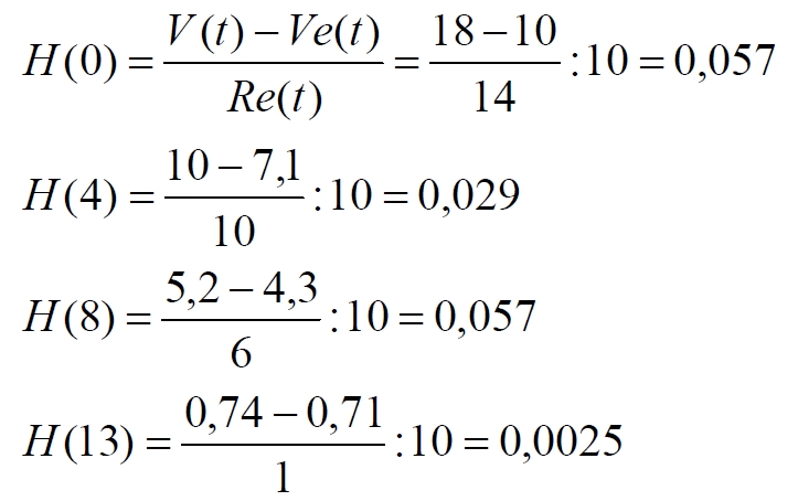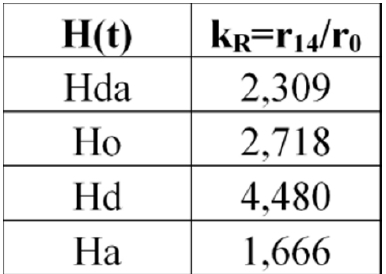 Замечаем, что максимальное значение этого коэффициента зависит только от параметра Хаббла. Коэффициент изменяется от 1 (в наши дни) до максимального значения (в прошлом, 14 млрд. лет назад). Для разных параметров Хаббла, рассмотренных в наших вычислениях, коэффициенты kR имеют максимальные значения:
