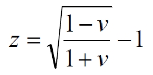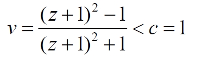 Не существует, наоборот, также и значений красного смещения z, при котором могла быть получена скорость v, превышающая скорость света, поскольку при любом z величина дроби меньше единицы:
