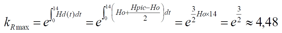 Параметры H(t) представлены у нас графически и аналитически, поэтому мы можем вычислить максимальные значения kR для Ho, Hd и Ha также и интегрированием соответствующих функций. Например, для Hd: