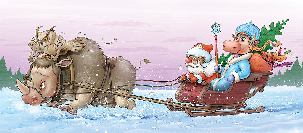 – Отличная идея! – обрадовался Хоря и поправил накладную бороду. – Впрягайся в сани, надевай оленью шкуру для тепла, довезёшь нас до Рогатиново.