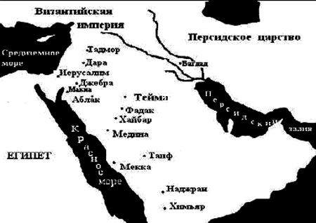 Илл.2. Карта расположения городов с еврейским населением на Аравийском полуострове (Хиджаз) в VII веке н. э.