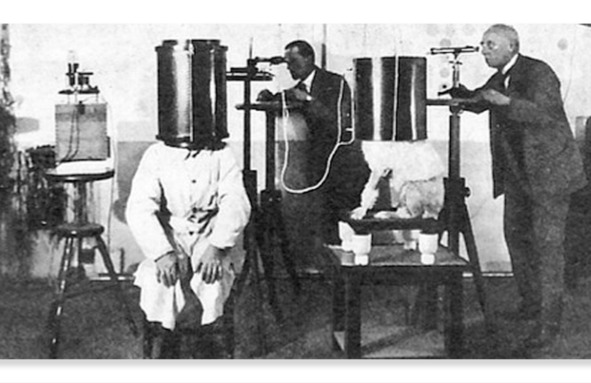Телепатические эксперименты с экранированными металлом индукторами и собаками проводились в Германии.