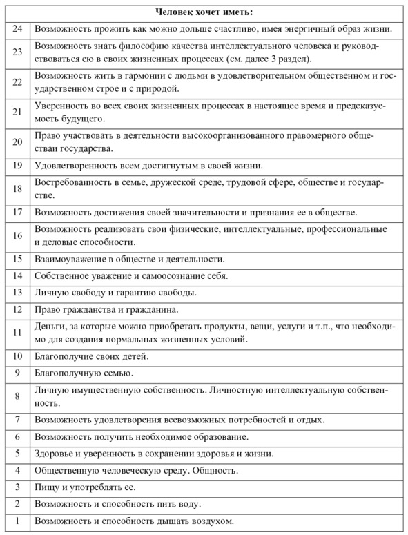 СТ состоит из 24 требований, которые необходимо видеть, осмыслить и анализировать любому человеку по отношению к себе, чтобы осознанно осуществлять сейчас и на ближайший период свою деятельность. Также есть возможность оглянуться назад и самому определить свою удовлетворенность или, наоборот, неудовлетворенность за уже прожитый период времени. Многие требования просты и понятны, но считаю необходимым обратить особое внимание на п. 17, где предлагается видеть необходимость своей значительности. Деятельный и целеустремленный человек всегда в жизни хочет быть замеченным в своем окружении. Не нужно быть скромным и скрывать это стремление, оно является мощным средством для активной жизнедеятельности. Значительный человек в чем-нибудь или во многих моментах в жизни обязательно будет востребован человеческой средой.