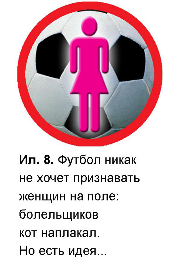 В начале 20-х годов исполнится сто лет, как женщины стали проводить свои официальные футбольные турниры. Началось это в Великой Бретании. А зрителей на стадионах, по прежнему, во время женских игр кот наплакал. Не интересно смотреть женский футбол. Нет ни азарта, ни страсти. Ни на поле, ни на трибунах. И быть не может: футбольные правила строились под мужчин. И размеры поля, и время игры, и количество человек в команде – всё это оттачивалось десятилетиями и только для мужчин. Женщинам нужно что то другое.