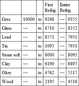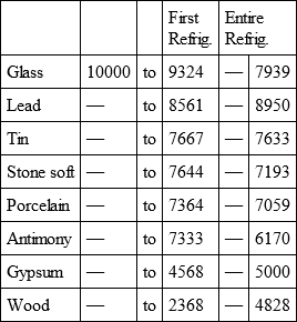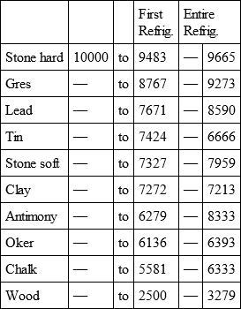 3dly, that the time of refrigeration of iron, to that of gres, so as to be held in the hand, is:: 531/2: 32 and:: 142: 1021/2, for their entire refrigeration.