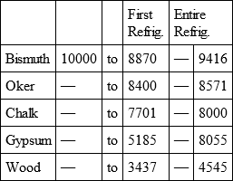Having placed in the same oven five other bullets, placed the same and separated from each other, their refrigeration was in the following proportions.