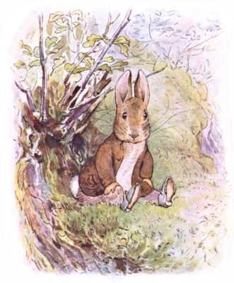 As soon as they had passed, little Benjamin Bunny slid down into the road, and set off—with a hop, skip, and a jump—to call upon his relations, who lived in the wood at the back of Mr. McGregor's garden.
