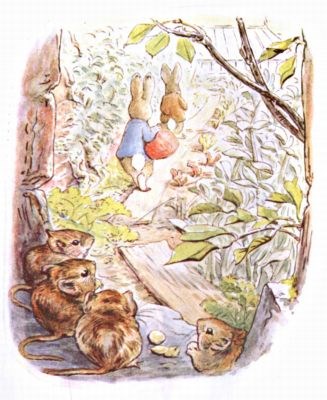 The mice sat on their doorsteps cracking cherry-stones; they winked at Peter Rabbit and little Benjamin Bunny.