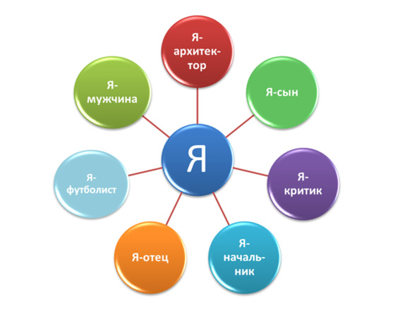 Роли сменяются не только в определенные жизненные периоды. В одно и то же время человек имеет несколько ролей, порой прямо противоположных. Так, например: «Я – мужчина», «Я – футболист», «Я – архитектор», «Я – цветовод», «Я – отец», «Я – сын и т. д. (рис. 2.1). Каждая из них – это частичка, одно из проявлений его личности. И когда человек с точкой сборки (своим Я, сознанием) окунается в одну из них и ощущает себя полностью в ней, он видит окружающий мир, и в том числе себя, с точки зрения этой субличности. Другими словами, в зависимости от того, где будет присутствовать его Я, человек и будет себя так воспринимать. Если он находится в социальной роли «Архитектор», его восприятие всего в настоящий момент будет касаться в первую очередь того, насколько это важно для работы, для самореализации в данной сфере. И потребности будут направлены на удовлетворение профессиональных запросов. Если сместить свое Я, точку сборки в роль «Мужчина», то автоматически меняются и все акценты. Уже более важными становятся отношения с женским полом, проявление своих мужских качеств. В моменты нахождения Я в субличности «Футболист» мужчина будет воспринимать жизнь с позиции достижений в спорте, а порой и задумываться о спортивной карьере. При перемещении в роль «Начальник» проявится желание управлять окружающими.