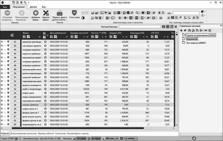 Рис. 5. Интерфейс программы KeyCollector – незаменимого помощника SEO-специалиста для работы с семантическим ядром сайта