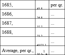 In corroboration of this view, if so eminent an authority as Adam Smith requires any corroboration, we subjoin the market prices of wheat at Oxford for the four years of James's reign. The averages are struck from the highest and lowest prices calculated at Lady-day and Michaelmas.