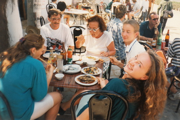 Поначалу мы пытались обедать в китайских ресторанчиках, но вскоре поняли свою ошибку. Во-первых, замысловатость названий экзотических китайских блюд и южный диалект работающих там девушек не позволяли выяснить характер пищи. Во-вторых, обслуживающий персонал при всей своей широкой улыбке все же проявлял редкое равнодушие к иностранцам и никоим образом не старался помочь – эффект наемного работника, не очень заинтересованного в посетителе. Но мы все же успели насладиться «Супом морской свежести», в котором чего только не было: и рыба, и креветки, и моллюски, но больше всего обычных морских ракушек, которых дети обычно собирают на берегу.