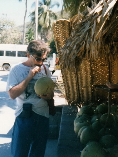 Китаец сначала очень острым кривым ножом, как кубинский мачете, отрубил верхнюю часть ровно настолько, чтобы обнажился находящийся внутри орех. Затем аккуратно вскрыл его и дал возможность через соломинку выпить кокосовое молоко, которое на поверку оказалось просто соком, поскольку к молоку не имело ни малейшего отношения. Мутноватая, горьковато-кислая жидкость пьется легко, неплохо утоляет жажду. После того как мы выпили содержимое, хозяин разрубил весь орех пополам и начал выковыривать белую оболочку ореха примерно 8-10 мм толщиной. Со вкусом этого ореха я уже был знаком, поэтому с большим удовольствием весь вечер хрустел им, потому что моя компаньонка от этого блюда отказалась.