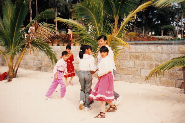 Вечно чумазые, обычно кое-как одетые китайские ребятишки в праздничные дни были одеты в новые яркие наряды: невзирая на жуткую жару, мальчики в темные костюмчики под взрослых, а девочки в яркие раскрашенные платья, чаще розового или красного цвета. Это и понятно, ведь это в Китае цвет невест. Но дети есть дети: одна из таких юных красавиц, продемонстрировав перед нами свое чудесное платье, тут же стала кататься в нем по грязному песку пляжа.