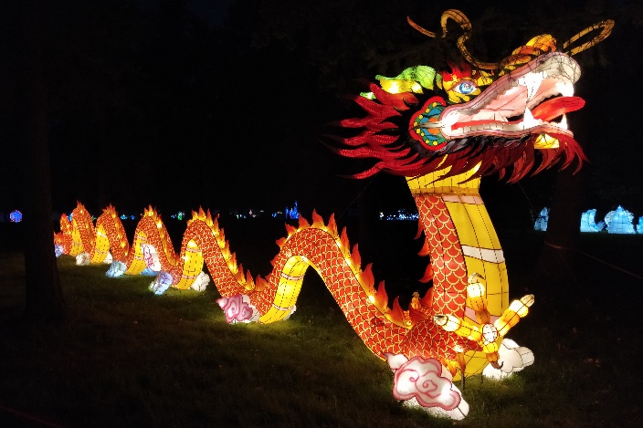 После ужина нам предложили поехать посмотреть Праздник фонарей в одном из парков уездного города Дунгуан. На подходе к парку и по всем аллеям были развешаны целые гирлянды совсем даже не маленьких красных фонарей. В парке и на прилегающем к нему стадионе была развернута настоящая феерия: из различных материалов на земле и на воде были выполнены сцены по разным сюжетам китайских художественных произведений, сказок, легенд, исторических событий. Драконы и фениксы, все и всяческие божества и богини, герои китайских эпосов и произведений, неподвижные и в движении, с замечательной разноцветной подсветкой поражали своей красотой и изяществом изображения. Один дракон даже время от времени появлялся из воды, так же, как и «Фея цветов». Этим парком мы были сильно очарованы и любовались весь вечер. Единственным сожалением стало то, что качественных фотографий этого мероприятия не получилось из-за ночных съемок.