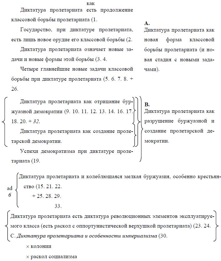 Диктатура пролетариата как новая форма классовой борьбы, перехода (переходной стадии общества) от капитализма к социализму. Два основных, дальше возникающих, вопроса: