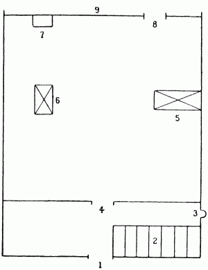 Библиотека соединялась со спальней Павла двумя дверьми, между которыми, в очень большом в этом месте утолщении стены, была устроена комнатка, вроде маленькой прихожей, где с одной стороны за перегородкой спал один из лакеев государя, а с другой стороны был выход на лестницу, которая вела в помещения княгини Гагариной и Кутайсова.