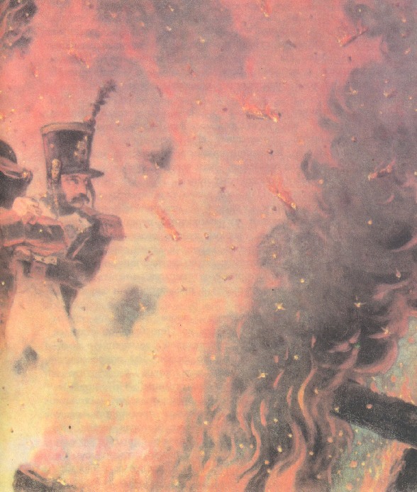 Затем тоскливая ночь, в продолжение которой ходили зловещие слухи о поджогах. Он был расстроен всем этим и не мог найти себе покоя. Ежеминутно призывал своих людей и заставлял повторять все слухи; он еще надеялся, что авось они не сбудутся, когда в 2 часа пополуночи пожар вспыхнул!