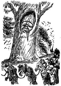 Разумеется, прежде всего Богатырь в лес ударился; видит, один дуб стоит – он его с корнем вырвал; видит, другой стоит – он его кулаком пополам перешиб; видит, третий стоит и в нем дупло – залез Богатырь в дупло и заснул.