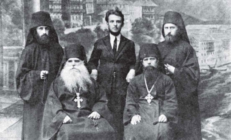 Сидят (слева направо): архимандрит Кирик, архимандрит Тихон (Троицкий). Стоят: монах Василий (Кривошеин), Димитрий Шаховской, монах Софроний (Сахаров). В Свято-Пантелеимоновом монастыре. 1926 г.