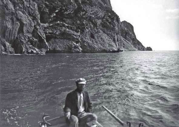 Над нами висели скалы, в одном месте колыхалась по волнам корзина на веревке. Это отшельники спускают, объяснили мне, а рыбаки иной раз что-нибудь кладут съедобное. Прежде подымали и людей в корзинах с берега на скалы, но сейчас этого нет.
