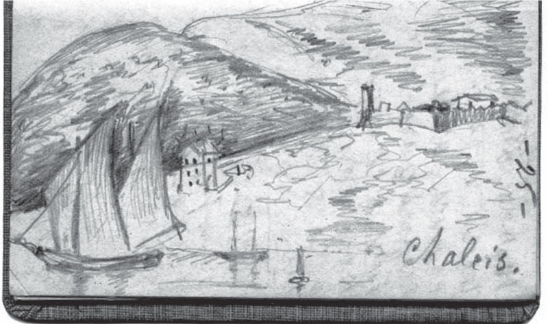 Стоим в Халкисе[143] – городке, мною нарисованном. Пароход простенький, грязный. Утро чудесное. Вблизи греческая земля (Остров Евбея). Видны бедные посевы, горы, но посевы уже выгорают, не бледно-зеленого, а желтеющего тона. Благоухание страны,