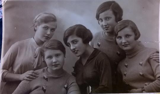 На фото: Подружки-одноклассницы 11.10.1937 года (10 класс): Женя – крайняя слева, в верхнем ряду. Лида – крайняя справа, в нижнем ряду. Из пяти девочек – барышень! выпускниц! – трое одеты в абсолютно одинаковые свитерочки. Согласитесь, это говорит о многом, особенно если сравнивать с нашим временем, временем культа потребления…