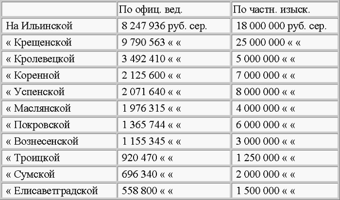 Отчего же происходит такая разница? – спросят читатели. Может быть, г. Аксаков прибавил в свой счет несколько ярмарок, которых обороты не входили в официальное исчисление? Может быть, он сосчитал все, что только продается на Украине, на всех сельских ярмарках, на которые товар большею частью привозится с тех же главных, оптовых ярмарок, исчисляемых в официальных ведомостях? В таком случае – не диво, если цифра у него значительно возвысилась, потому что сельских ярмарок в одной Харьковской губернии 425 да в Полтавской 372. Правда, что не было бы дива, если б было так. Но вот что диво: г. Аксаков считает обороты именно только оптовых ярмарок тех самых одиннадцати, о которых имеются официальные ведомости. И по его исследованиям выходит вот какая параллель.