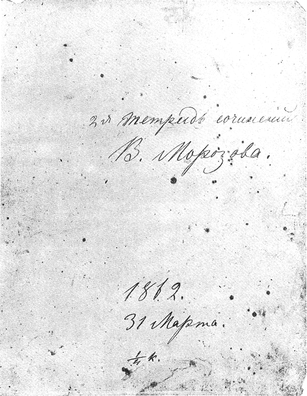 Обложка ученической тетради ученика Яснополянской школы В. Морозова (с автографом Л. Н. Толстого).