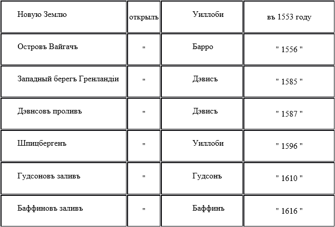 И въ самомъ дѣлѣ, хронологическая таблица географическихъ открытій англичанъ представляется въ слѣдующемъ видѣ: