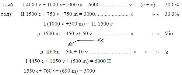 а = b = с = 3. Величина стоимости продуктов a = b = с равна 3 (трем единицам стоимости), из которых 1 приходится на сверхстоимость[26].